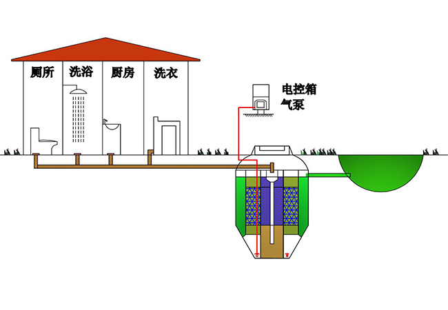 微动力太阳能净化罐工艺采用高效生物填料,形成缺氧、好氧、沉淀等功能区,能同步硝化反硝化,通过气泵实现曝气增氧,微生物菌群丰富、活性高,出水达到《城镇污水处理厂污染物排放标准》(GB18918-2002)一级A 排放标准。